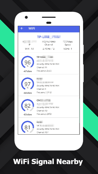 Jika Anda ingin mengetahui tempat terbaik untuk mendapatkan koneksi WiFi, Anda telah datang ke tempat yang tepat. Aplikasi ini dapat dengan cepat menganalisis sinyal WiFi yang tersedia dan menunjukkan lokasi sinyal terkuat.